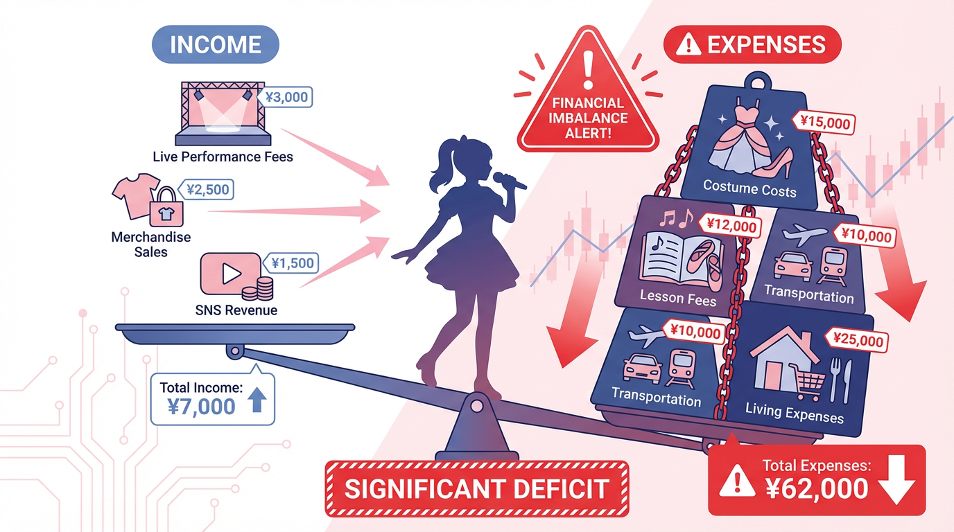 一見、SNSフォロワー数が数十万人を超え、ライブは即日完売、グッズも売れる「人気アイドル」に見えても、経済的な持続性が確保できていない現実があるのだ。