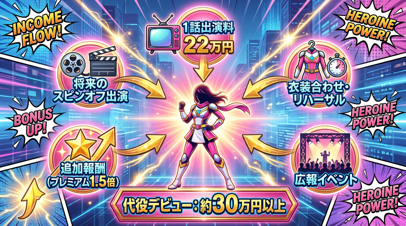 まず、一般的な戦隊ヒロインの出演料は、1話あたり約10万円〜20万円が相場とされている。