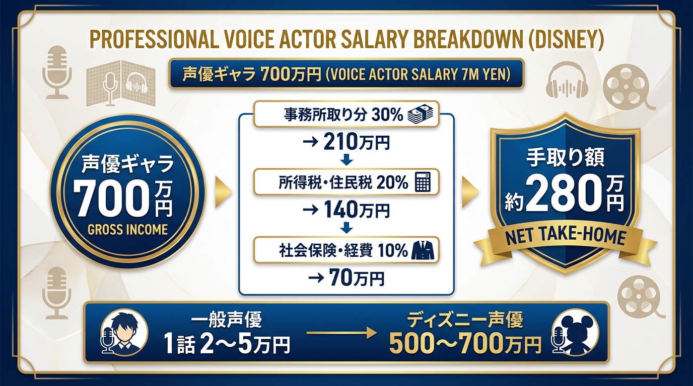 こうして見ると、「700万円の声優ギャラ」が実際の手取りでは約280万円前後になるのです。