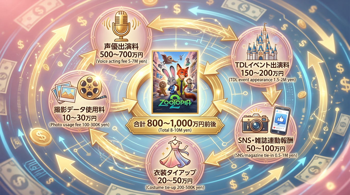 「ディズニー関連の大作で主要キャラを務めるタレントは、1作品あたり500〜800万円の報酬が提示されることが多いですね。特に『声優+イベント出演+CMタイアップ』がセットになると、合計で1,000万円近くになるケースもあります」(音響制作会社プロデューサー)