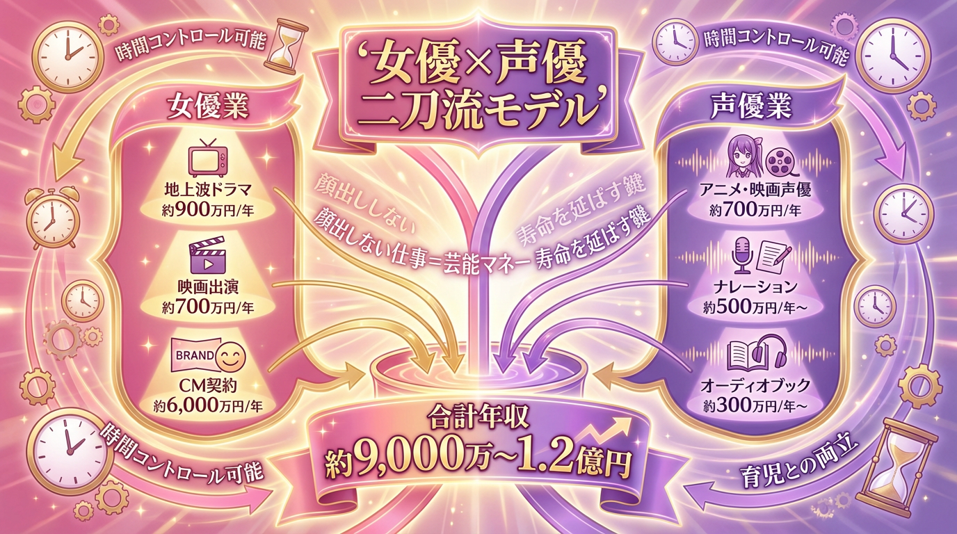 ここで注目したいのが、女優と声優の組み合わせによる「年収の底上げ」モデルです。