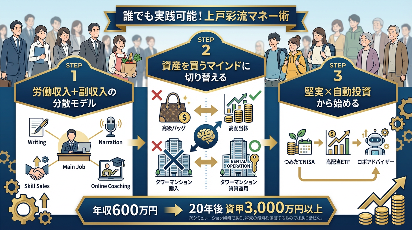 この最終セクションでは、「一般人でも真似できる芸能人流マネー術」にフォーカスし、誰でも実践可能な資産形成の3ステップを提示します。